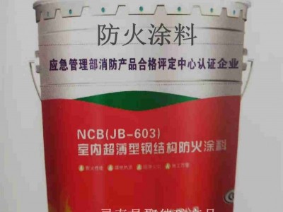 NCB(JB-603)室内超薄型钢结构防火涂料 用于建筑物室内或隐蔽工程的钢结构防火保护的防火涂料;我公司产品经“国家固定灭火系统和耐火构件质量监督检验中心”按《钢结构防火涂料》GB14907-2002标准检验,产品技术性能符合标准中NB型的规定要求,耐火极限可达到2.0小时,取得合格检验报告。同时获得应急管理部消防产品合格评定中心《中国国家强制性产品认证证书》3C证书。